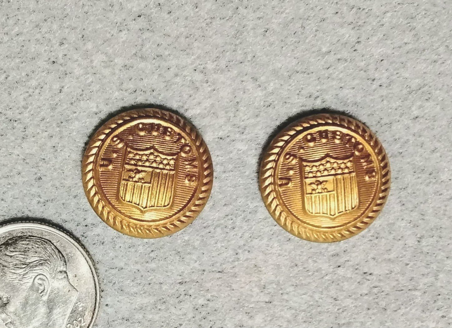 2 U.S. Customs Service insignia for dress uniform shoulder scale, 15.8 mm.